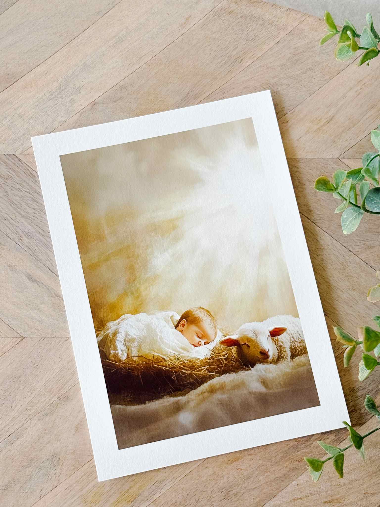 In Behold the Lamb, the Christ Child rests peacefully in the manger beside a gentle lamb, bathed in the radiant light of heaven. This tender scene reminds us of Christ as both the innocent Lamb of God and the Light of the World, bringing hope and peace into our homes. With superior Giclée printing and acid-free archival inks on museum-grade paper, each print beautifully preserves the depth, warmth, and detail of the original artwork. Available in both 5x7 vertical and 8x10 horizontal formats, it makes a meaningful Christmas decoration, baptism gift, or timeless addition to any sacred space.