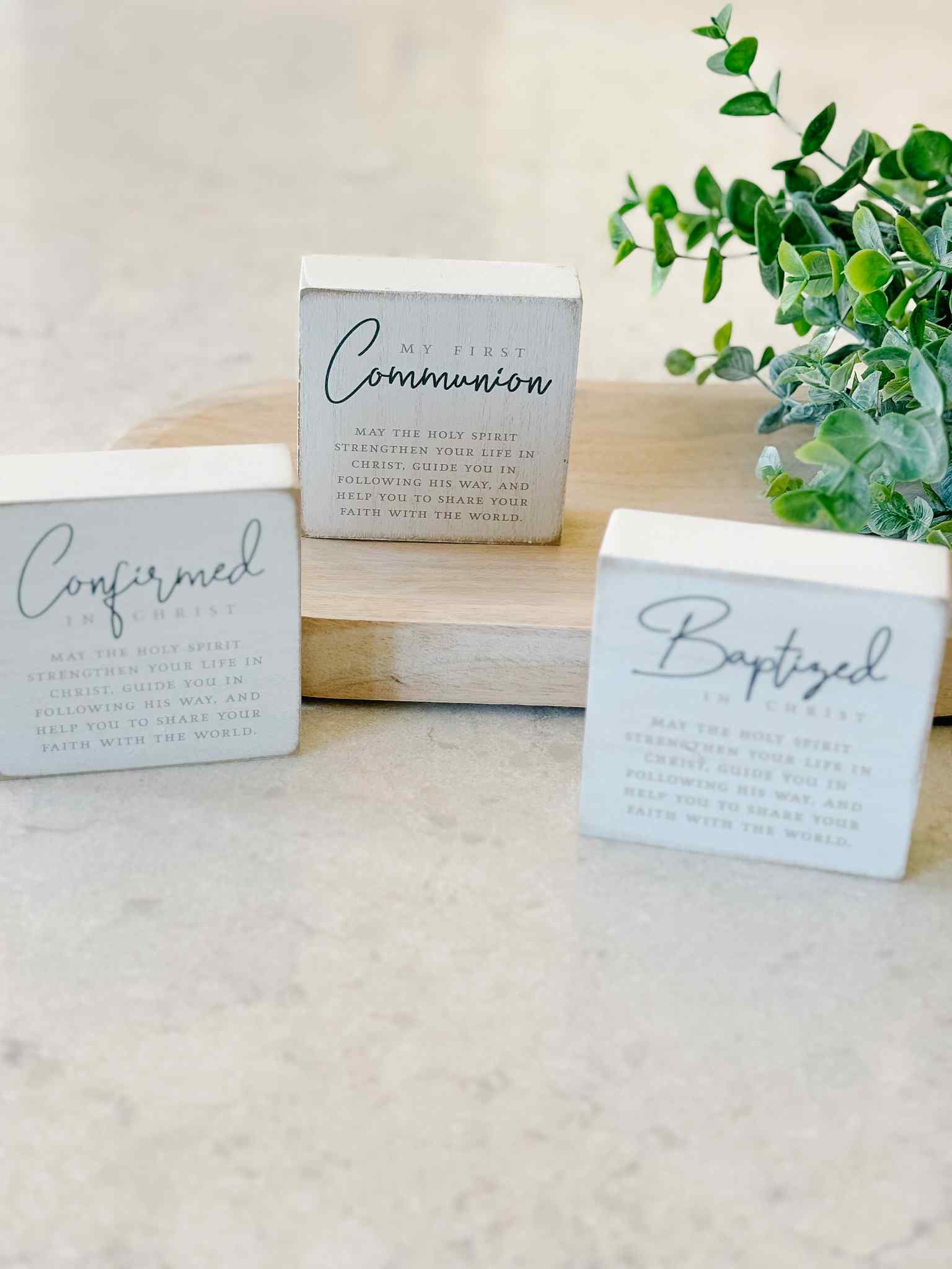 This Confirmation Tabletop Wooden Plaque is a meaningful keepsake for those receiving the sacrament of Confirmation, a life-changing moment where the Holy Spirit strengthens and empowers us in Christ. Featuring the text: “May the Holy Spirit strengthen your life in Christ, guide you in following His way, and help you to share your faith with the world,” this plaque serves as a beautiful reminder of the new spiritual gifts received through Confirmation.