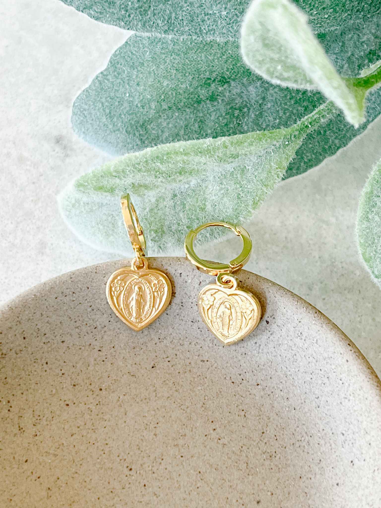 Heart Shaped Miraculous Medal Earrings