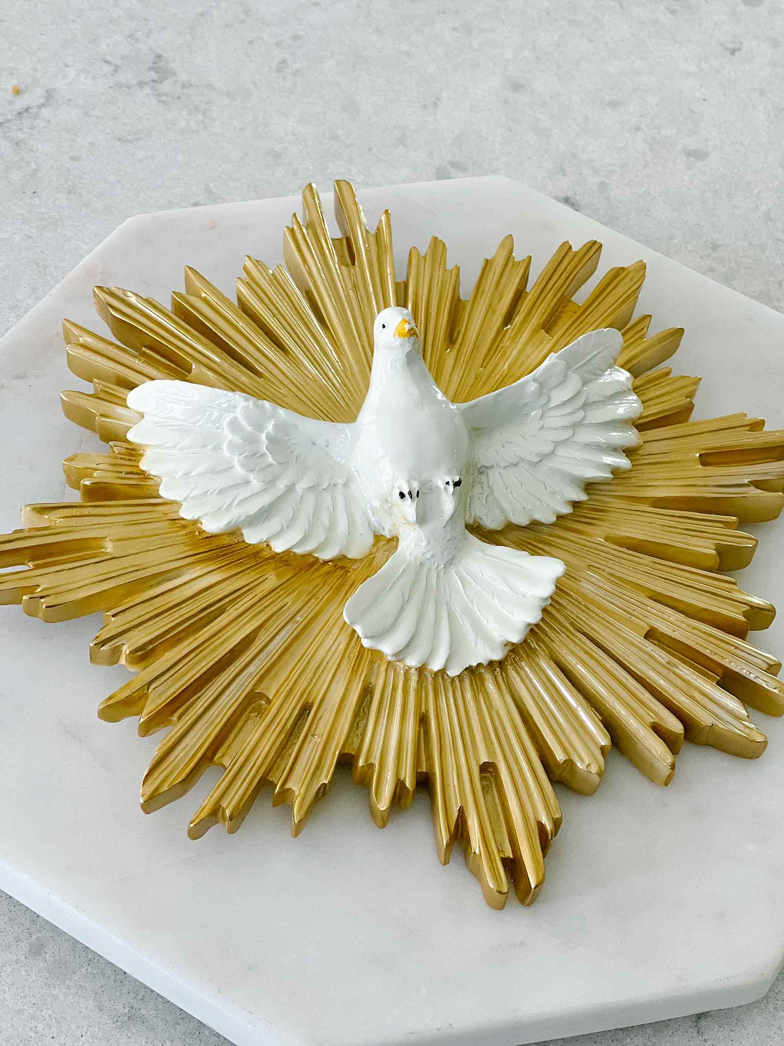 Our Holy Spirit Wall Plaque is the perfect addition to your Catholic Home Decor. Handcrafted and painted by Portuguese artisans, the Dove represents the Holy Spirit when it descended from heaven at Jesus' baptism (Matthew 3:16).