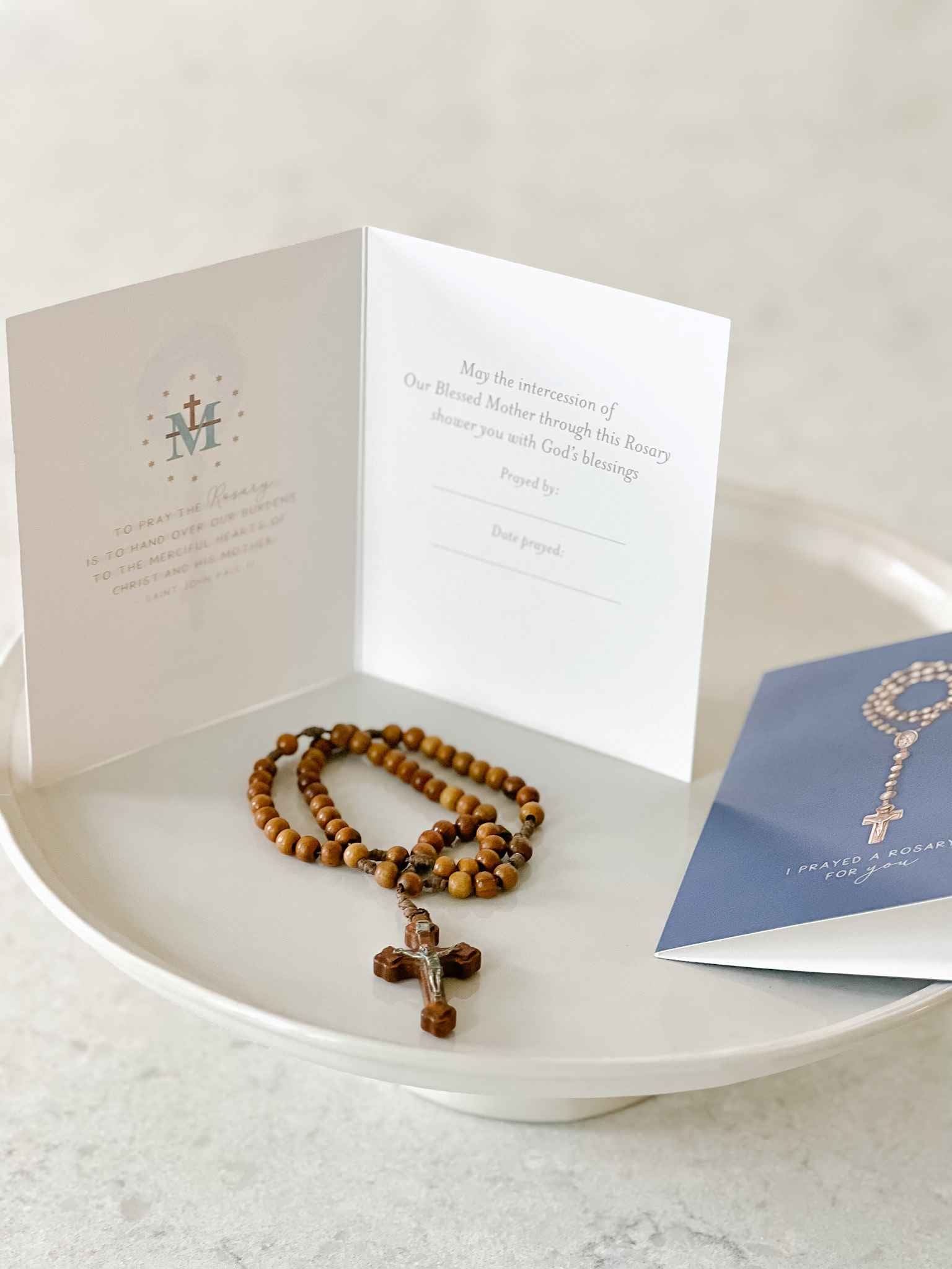 Praying a Rosary for a loved one and their intentions, and want to send them the encouragement of your prayers? Send them a Wooden Rosary Card, featuring a watercolor image of a wooden Rosary, as a symbol of your prayers for them.