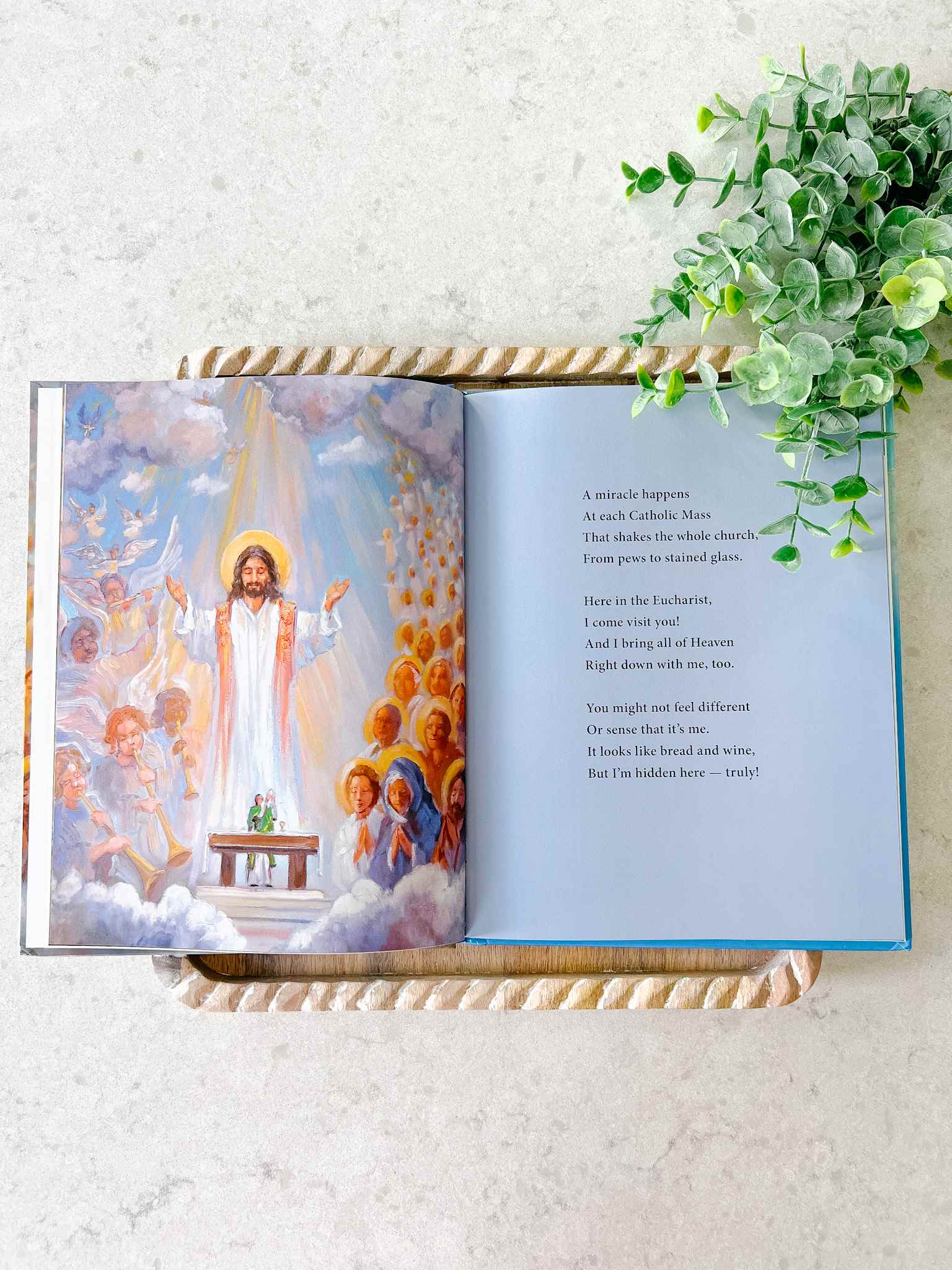 With beautiful illustrations and memorable rhyme, this book introduces children to the miracle that occurs at every Mass — the bread and wine on the altar transformed into the real presence of Jesus. Told from the unique and intimate perspective of Jesus himself, the story explains the incredible gift that the Eucharist is for us.