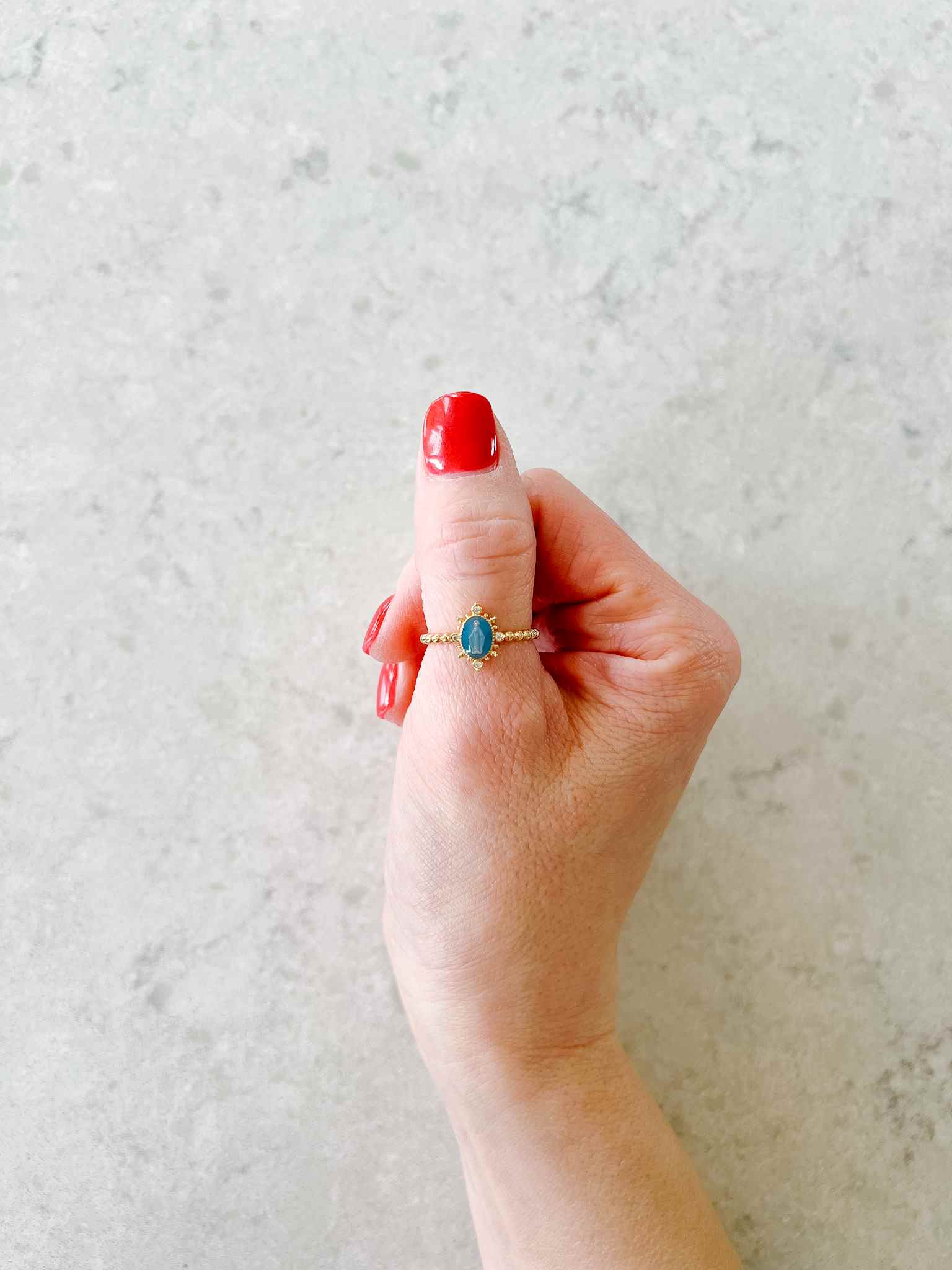 Deepen your faith with our Lady Lourdes Ring in French Blue. This piece features a dainty ball band highlighting a portrait of the Virgin Mary that is surrounded by ornamental cubic zirconia accents and embellished spike details. It’s a perfect neutral for your daily stack of rings. Wear this gold ring every day and let the Virgin Mary guide your hands to help others. It’s a beautiful reminder of how Mary watches over all of God’s children.