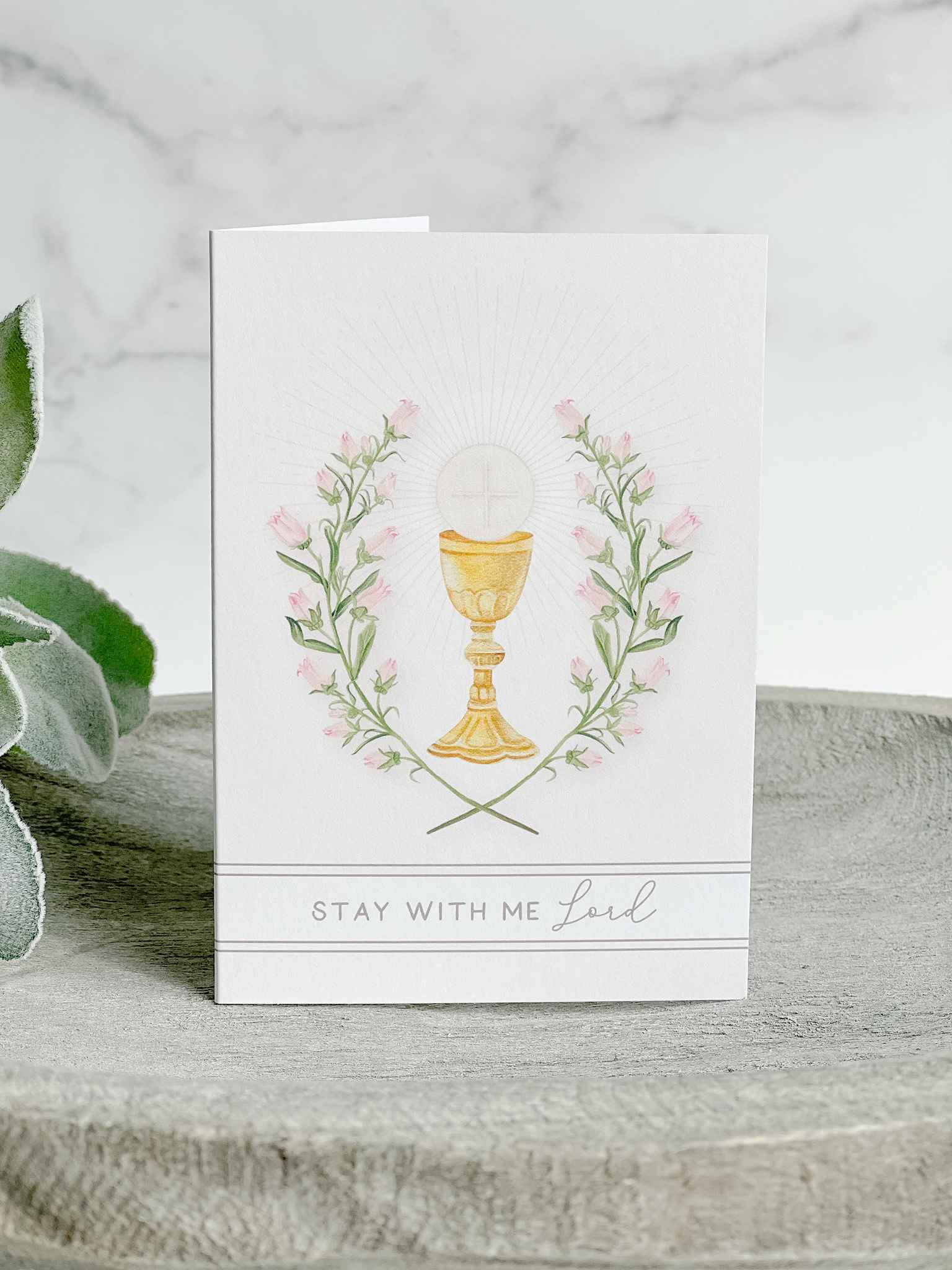 Written beautifully by Saint Padre Pio, our Stay With Me Lord Prayer Card raises our hearts and minds to true worship after receiving the sacrament of Holy Communion. The card is folded and is perfect to take with you to Mass or makes a perfect gift for First Holy Communion.